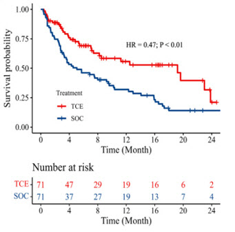 이번 연구에서는 기존 치료로 효과를 보지 못한 재발·불응성 다발골수종 환자 142명을 대상으로 이중특이항체 치료군(71명)과 기존 표준 치료군(71명)을 비교하였다. 그 결과, 이중특이항체 치료군에서 질병이 진행되지 않고 생존하는 무진행생존기간 (Progression-Free Survival)이 기존 표준 치료 대비 약 3배 가량 연장된 것으로 나타났다.