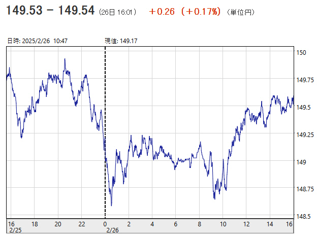 달러·엔 환율 추이. 오후 4시 1분 현재 149.53~149.54엔. 출처 니혼게이자이신문 |
