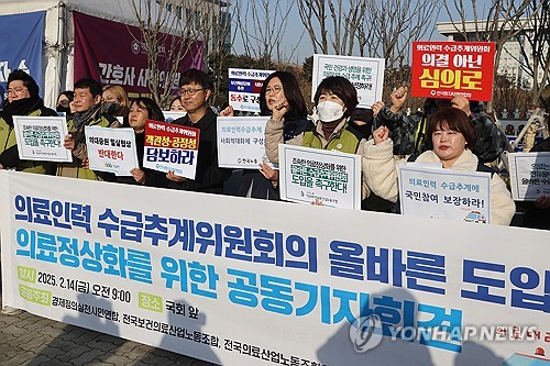 연대회의는 "국회가 과학적 근거를 토대로 전문가들이 검증하도록 하겠다는 방향을 수용해 왔는데도 대한의사협회와 전공의는 복귀 입장을 밝히지도 않으며 과도한 의사 주도 조항을 요구, 국회 심의 반대만을 고집하고 있다"고 비판했다.