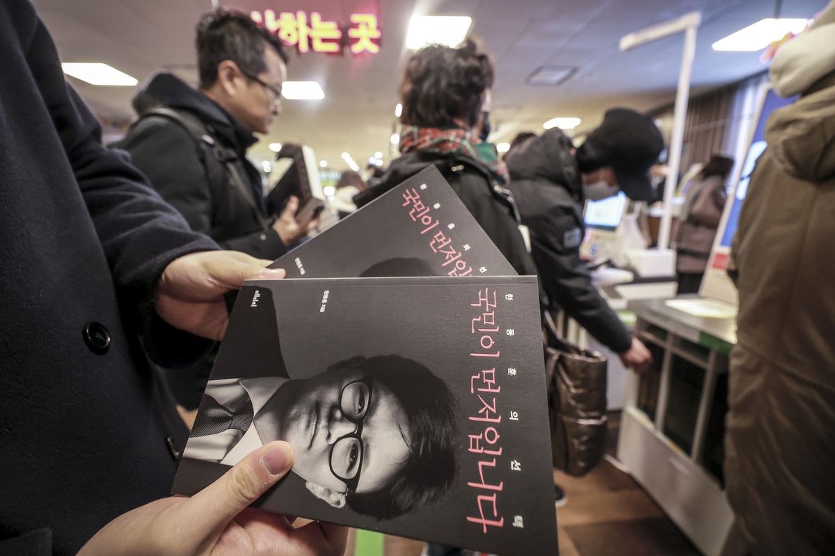국민의힘 한동훈 전 대표의 책 ‘한동훈의 선택 - 국민이 먼저입니다’가 발간된 26일 서울 종로구 교보문고에서 지지자와 시민들이 책을 구매하고 있다. 뉴시스 |