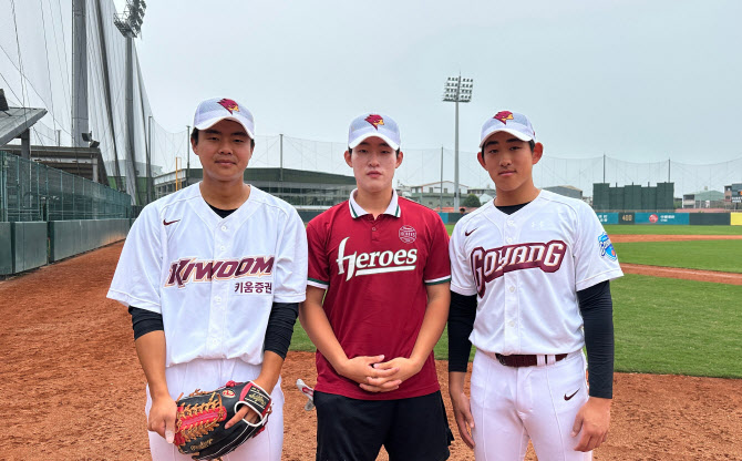 연습경기 승리를 이끈 키움히어로즈 신인 3인방. 왼쪽부터 어준서-전태현-양현종. 사진=키움히어로즈 |
