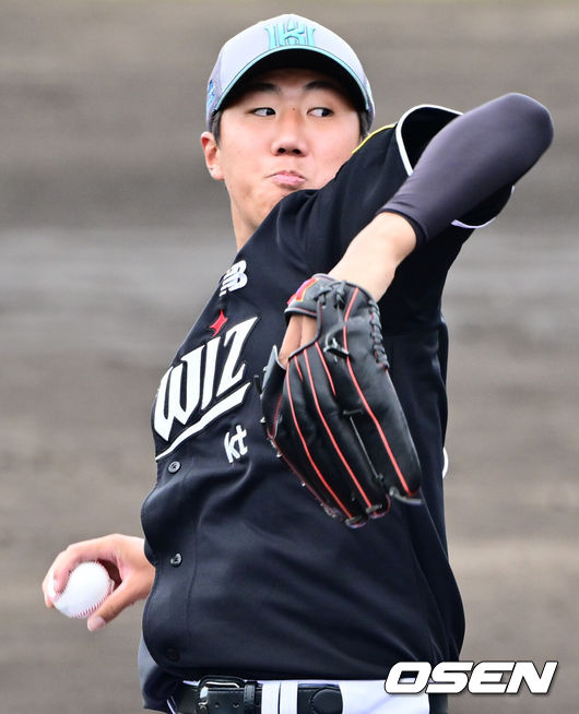 2025 신인 드래프트 1라운드(9순위) 지명으로 입단한 우완투수 김동현은 올 시즌 1군에서 바로 뛸 수 있는 유망주 중 한 명으로 기대를 모으고 있다. 이강철 감독은 이날 경기 전 인터뷰에서 "(김)동현이도 좋은 공을 갖고 있다. 제구는 조금 흔들리는데 한 번 보려고 한다. 작년에도 10이닝 정도밖에 소화를 안했더라. 제구력이 잡히는 모습이 보이면 초반에 불펜으로 쓰려고 생각하고 있다”라고 말했다.