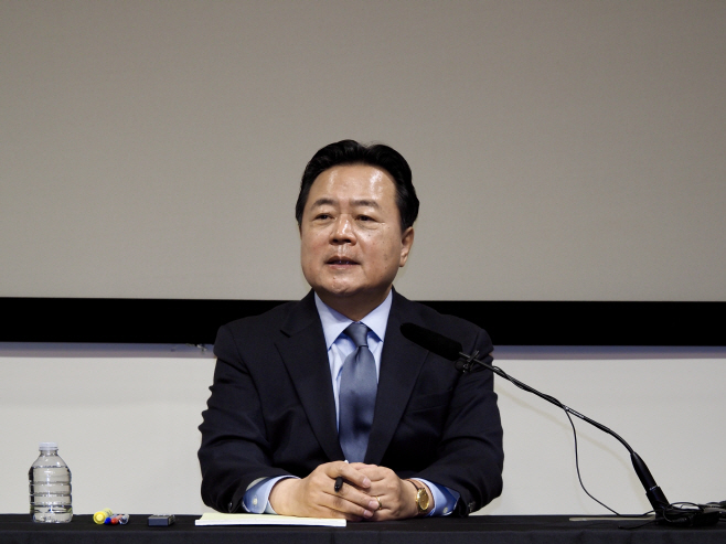 조현동 주미 한국대사가 26일(현지시간) 미국 워싱턴 D.C. 한국문화원에서 특파원단 간담회를 갖고 있다./하만주 워싱턴 특파원 |