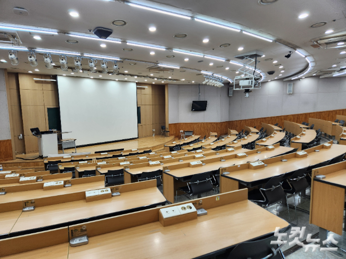의대생들이 집단 휴학을 하면서 한 의과대학 강의실이 텅 비어 있다. 정혜린 기자 |