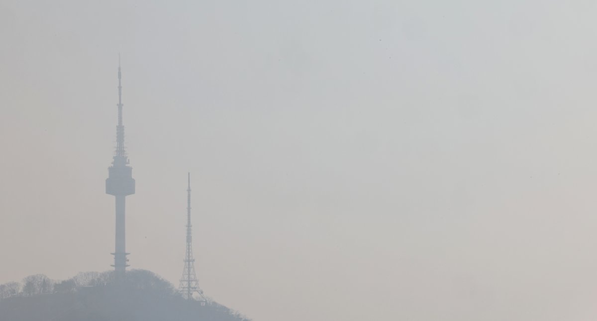 초미세먼지 주의보가 내려진 12일 서울 시내에서 바라본 남산타워가 뿌옇게 보이고 있다. 2024.02.12. 서울=뉴시스 |