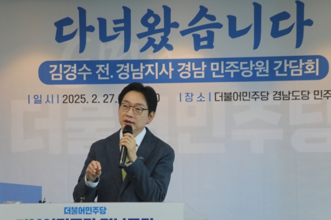한편 이날 행사는 영국·독일에서 유학 생활을 하다 비상 계엄을 계기로 조기 귀국한 김 전 지사가 경남도당 당원들과 귀국 인사를 나누기 위해 진행됐다. 김 전 지사는 지난 9일 민주당에 복당했다.