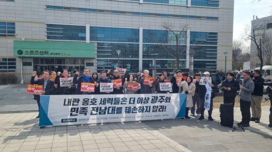 단체는 "전국의 대학가에서 극우 유튜버들과 각 대학의 학생들이 합세해 탄핵 반대 시국선언을 하고 물리적 충돌을 유발하고 있다"며 "우리는 5·18민주화운동 발원지 전남대에서 내란 옹호 세력들이 5·18 정신을 더럽히는 것을 두고 볼 수 없다"고 주장했다.