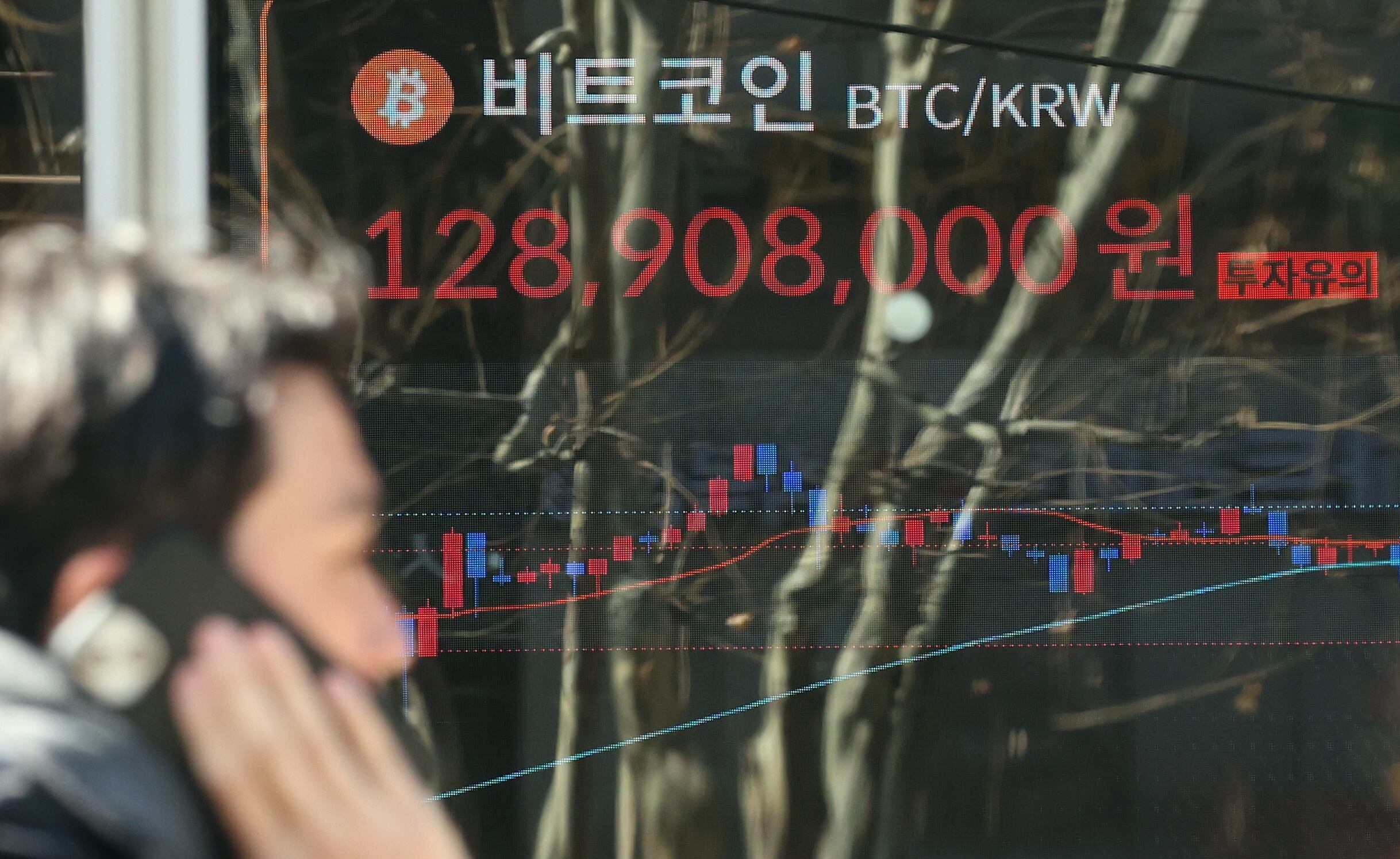 서울 서초구 빗썸라운지 전광판에 비트코인 시세가 표시되고 있다. /뉴스1 |