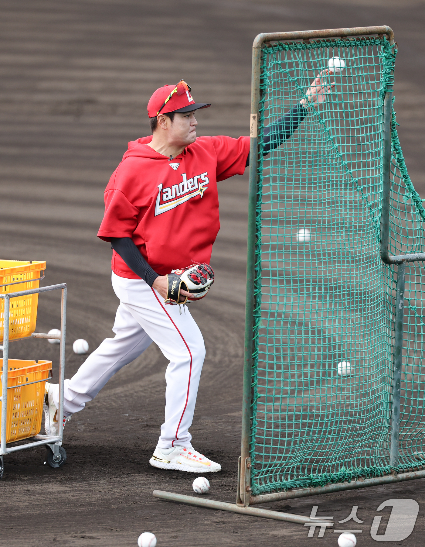 (오키나와(일본)=뉴스1) 허경 기자 = 추신수 SSG 구단주 특별보좌역 및 육성총괄이 28일 일본 오키나와 구시카와 야구장에서 열린 KT 위즈와 SSG 랜더스 연습경기에 앞서 베팅볼을 던지고 있다. 2025.2.28/뉴스1