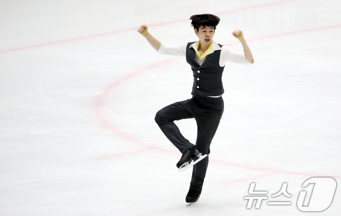 1일 오후 경기도 의정부 실내빙상장에서 열린 '2024 KB금융 전국남녀 피겨스케이팅 회장배 랭킹대회'에서 남자 시니어 프리스케이팅 부문에 출전한 서민규가 연기를 펼치고 있다. 2024.12.1/뉴스1 ⓒ News1 이승배 기자 |