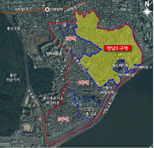 1일 용산구에 따르면 구는 지난달 26일 위험건축물1개 동을 철거하면서 관내 최대 재정비촉진사업인 한남3구역의 본격적인 공사 절차에 돌입했다. 2003년 뉴타운 지구 지정 후 22년만이다.