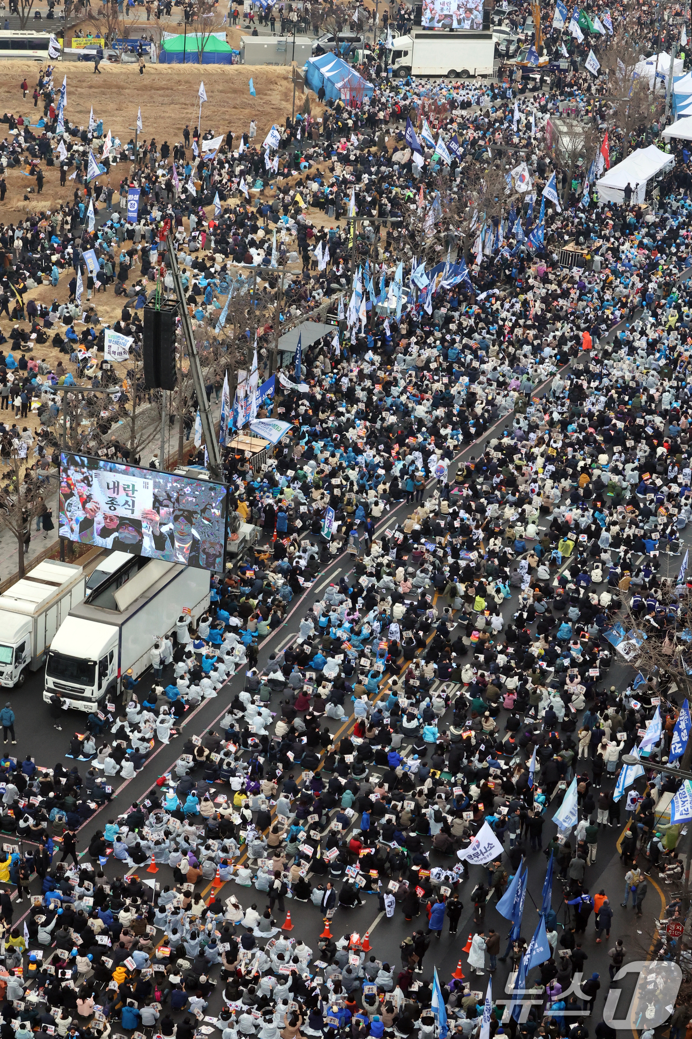 (서울=뉴스1) 황기선 기자 = 1일 오후 서울 종로구 안국동 사거리에서 야 5당 공동 '윤석열 파면 촉구 범국민대회'가 열리고 있다. 2025.3.1/뉴스1