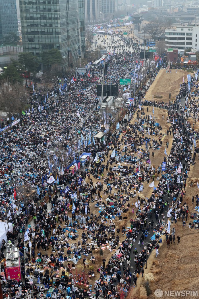 [서울=뉴스핌] 정일구 기자 = 1일 오후 서울 종로구 안국동 사거리에서 야5당 공동 내란종식·민주헌정수호를 위한 윤석열 파면 촉구 범국민대회가 열리고 있다. 2025.03.01 mironj19@newspim.com