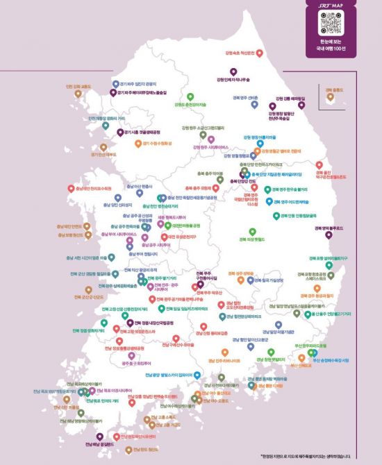 국내 여행 100선 중 대표지역. 에스알 제공 |