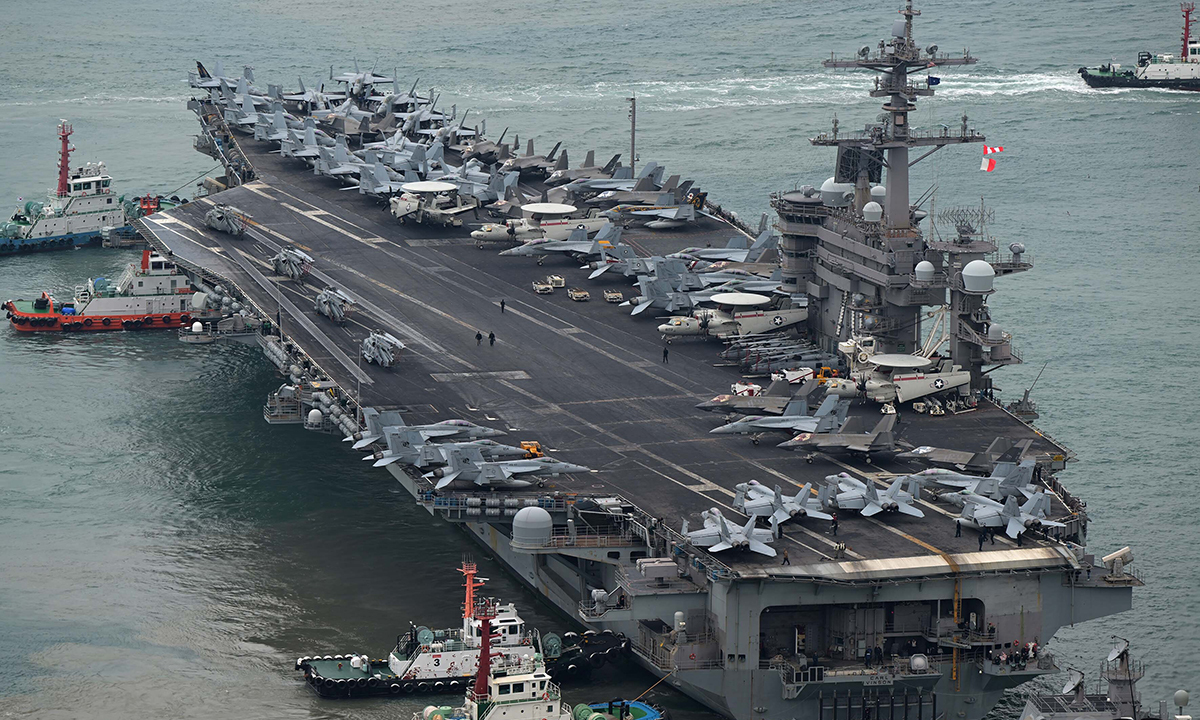 해군작전사령부는 2일 항공모함 칼빈슨함을 비롯한 미 해군 제1항모강습단이 부산작전기지에 입항했다고 밝혔다. 미 해군 핵항모의 방한은 지난해 6월 루즈벨트함 이후 약 8개월 만이다.