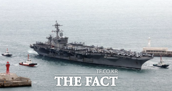 [더팩트 | 김해인 기자] 미국 해군 항공모함 칼빈슨함(CVN)이 도널드 트럼프 미국 대통령 2기 행정부 출범 이후 처음으로 한국에 입항했다.