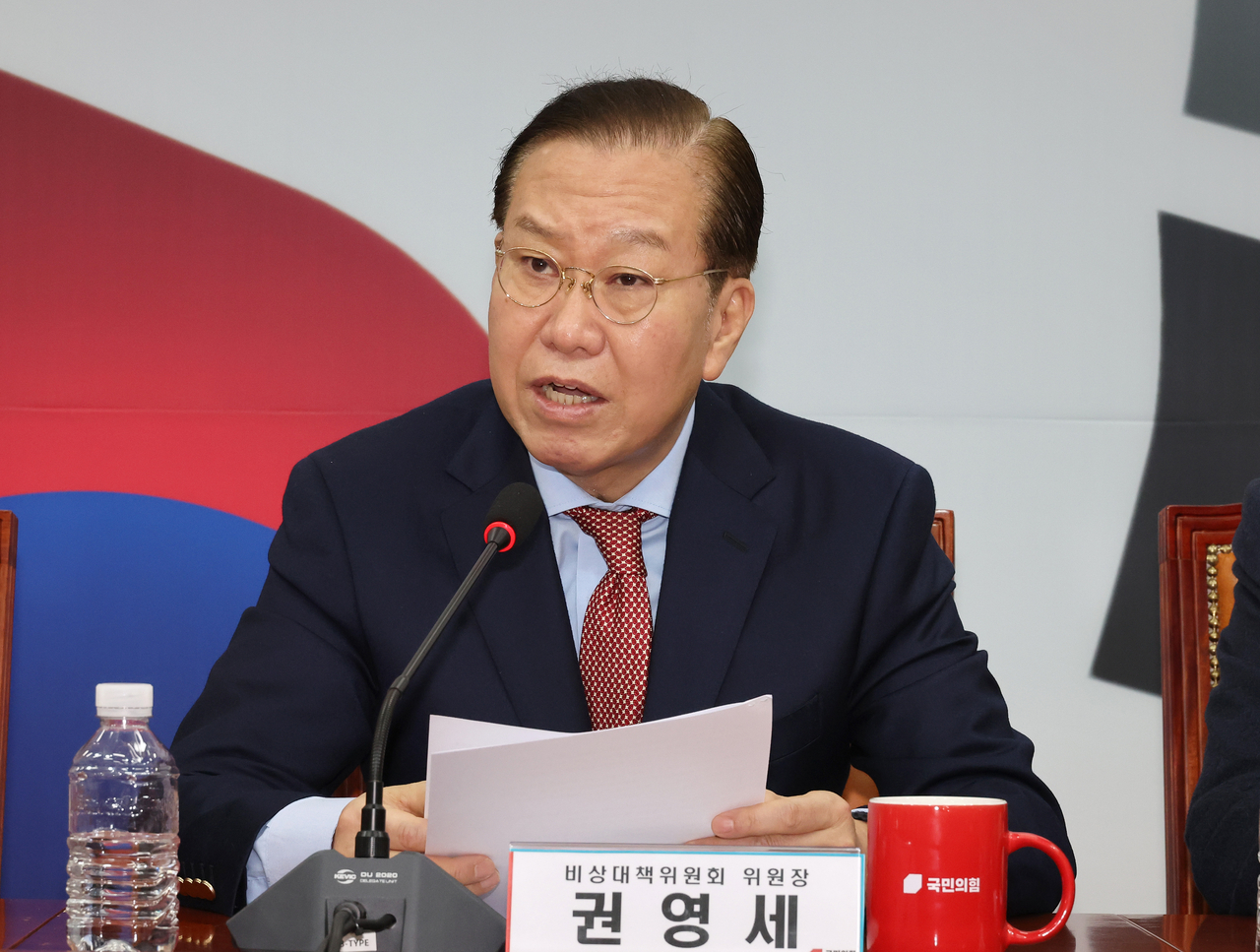 국민의힘 권영세 비상대책위원장(가운데)이 지난달 27일 서울 여의도 국회에서 열린 비상대책위원회 회의에서 발언하고 있다. [연합] |