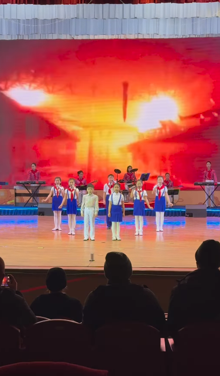 그는 탄도 미사일이 표적을 공격하는 영상을 배경으로 한 8살 어린이들의 공연을 감상했는데 노래 가사는 “우리 원수님 세상에서 최고야” 등의 개인숭배를 담은 내용이었다.