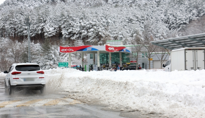 강원 산간을 중심으로 폭설이 내린 3일 강원도 강릉시 영동고속도로 강릉휴게소 앞 모습./사진=뉴스1 |