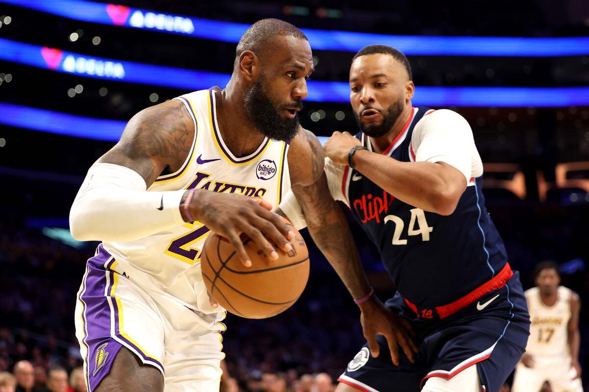 르브론은 3일(한국시간) 미국 캘리포니아주 LA의 크립토닷컴 아레나에서 열린 LA클리퍼스와의 ‘LA더비’를 앞두고 역대 통산 41820점을 기록 중이었다. 포스트시즌 득점과 합치면 49982점. 18점만 더 넣으면 정규리그+포스트시즌 득점 합계가 5만점이 될 수 있었다.