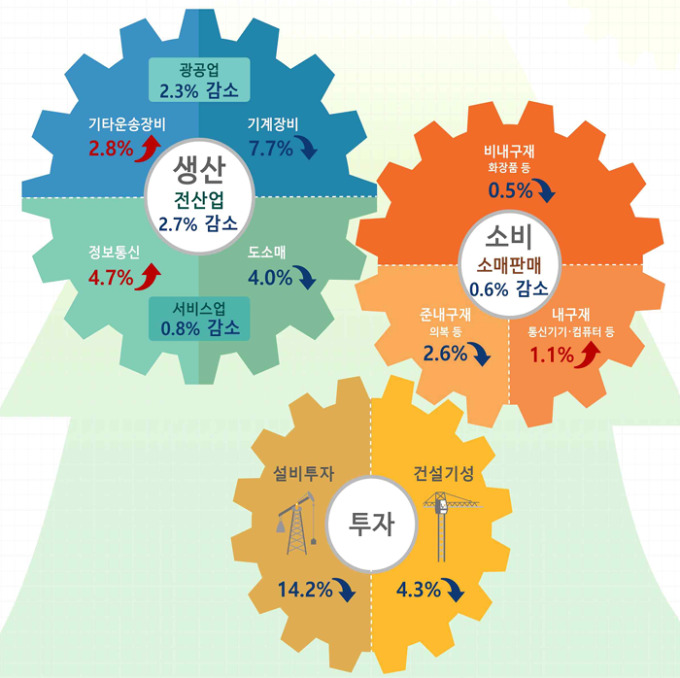 부문별로는 광공업(-2.3%)과 서비스업(-0.8%) 등에서 모두 감소했다.