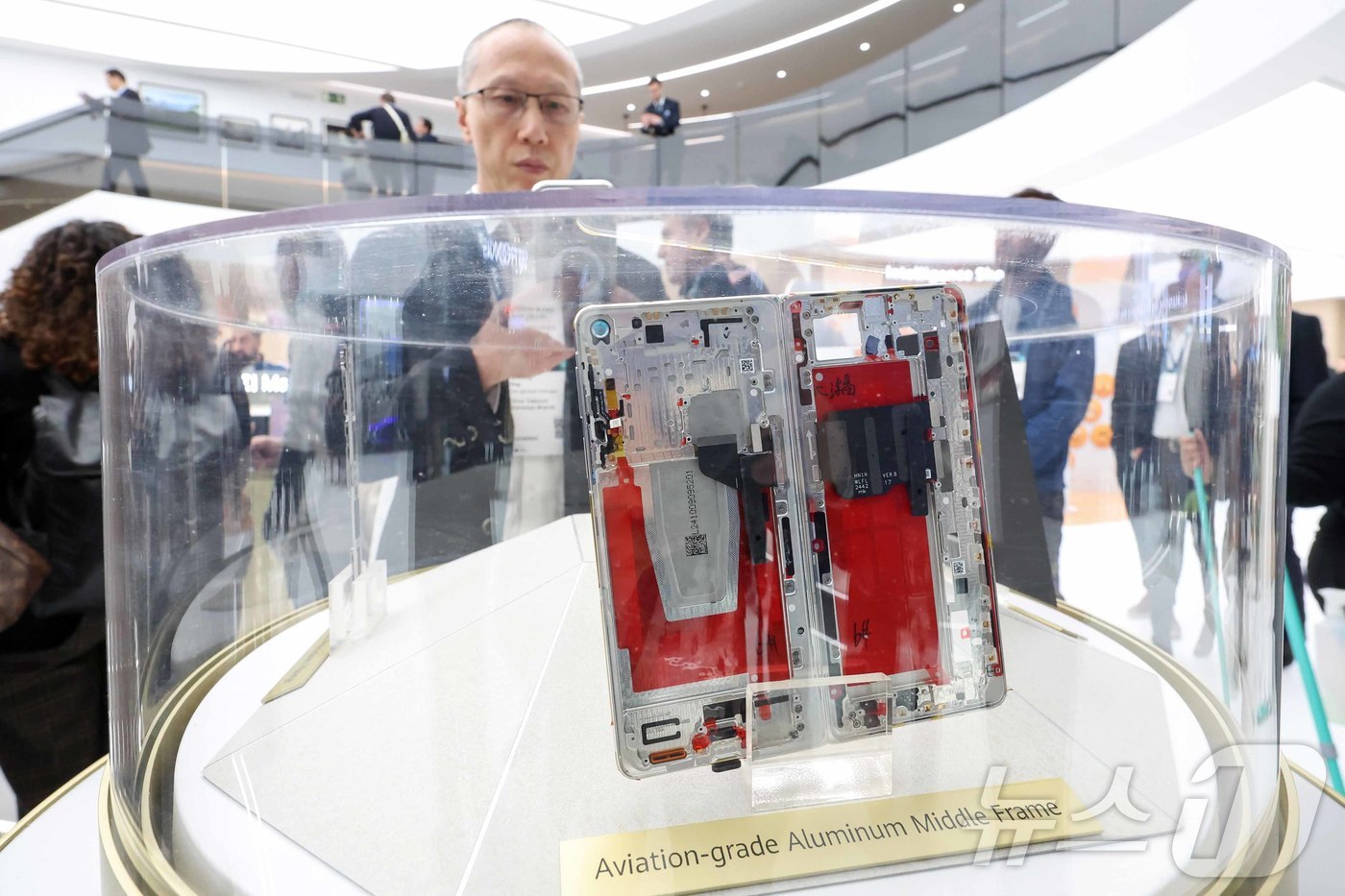 (바르셀로나(스페인)=뉴스1) 민경석 기자 = 3일(현지시간) 스페인 바르셀로나 피라 그란 비아 전시장에서 열린 '모바일 월드 콩그레스(MWC) 2025'를 찾은 관람객들이 화웨이 부스에서 폴더블폰 프레임을 살펴보고 있다. MWC는 전세계 800여 개의 이동통신사가 참여하는 세계이동통신사업자연합회(GSMA)가 주관하는 행사로, 미국과 독일에서 각각 열리는 CES, IFA와 함께 3대 전자·IT 전시회로 꼽힌다. 올해 MWC에 참가하는 한국 기업은 187곳으로 지난해보다 22곳이 늘었다. 2025.3.4/뉴스1