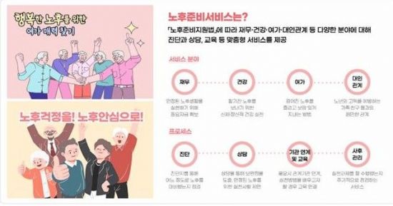 시는 실효성 있는 다양한 사업 추진을 위해 노후 준비 4대(건강·재무·여가·대인관계) 영역 관련 전문기관들로 협의체를 구성할 예정이다. 이어 다음 달 '노후 준비 콘퍼런스'를 열어 '행복한 노후'를 위한 특별 강연과 영역별 체험부스를 운영한다.