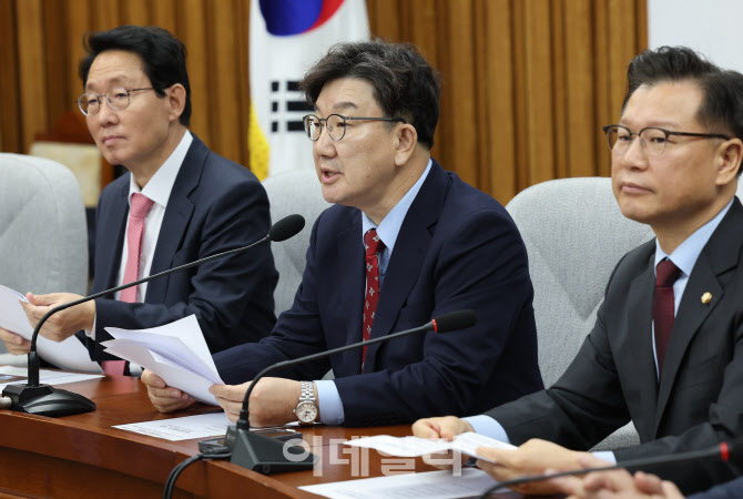 [이데일리 노진환 기자] 권성동 국민의힘 원내대표가 4일 오전 서울 여의도 국회에서 열린 원내대책회의에서 모두발언을 하고 있다. |