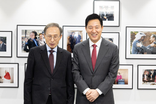 이 전 대통령은 오 시장이 집필 중인 저서 ‘다시 성장이다’를 언급하며 “의제를 잘 잡았다. 이 시점에 가장 필요한 것이 성장”이라며 “이렇게 국민에게 희망을 줘야 한다”고 말했다.