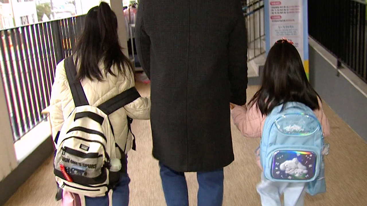새 학기 첫날, 아이들이 부모 손을 잡고 걸음을 옮깁니다.