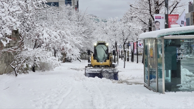 밤 사이 많은 눈이 내린 3일 강원 강릉에서 시청 직원들이 제설 작업을 하고 있다./사진=뉴스1(강릉시 제공) |