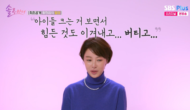 4일 오후 방송된 SBS플러스, E채널 예능 프로그램 '솔로라서'에서 황정음은 두 아들 왕식, 강식을 최초로 공개했다.