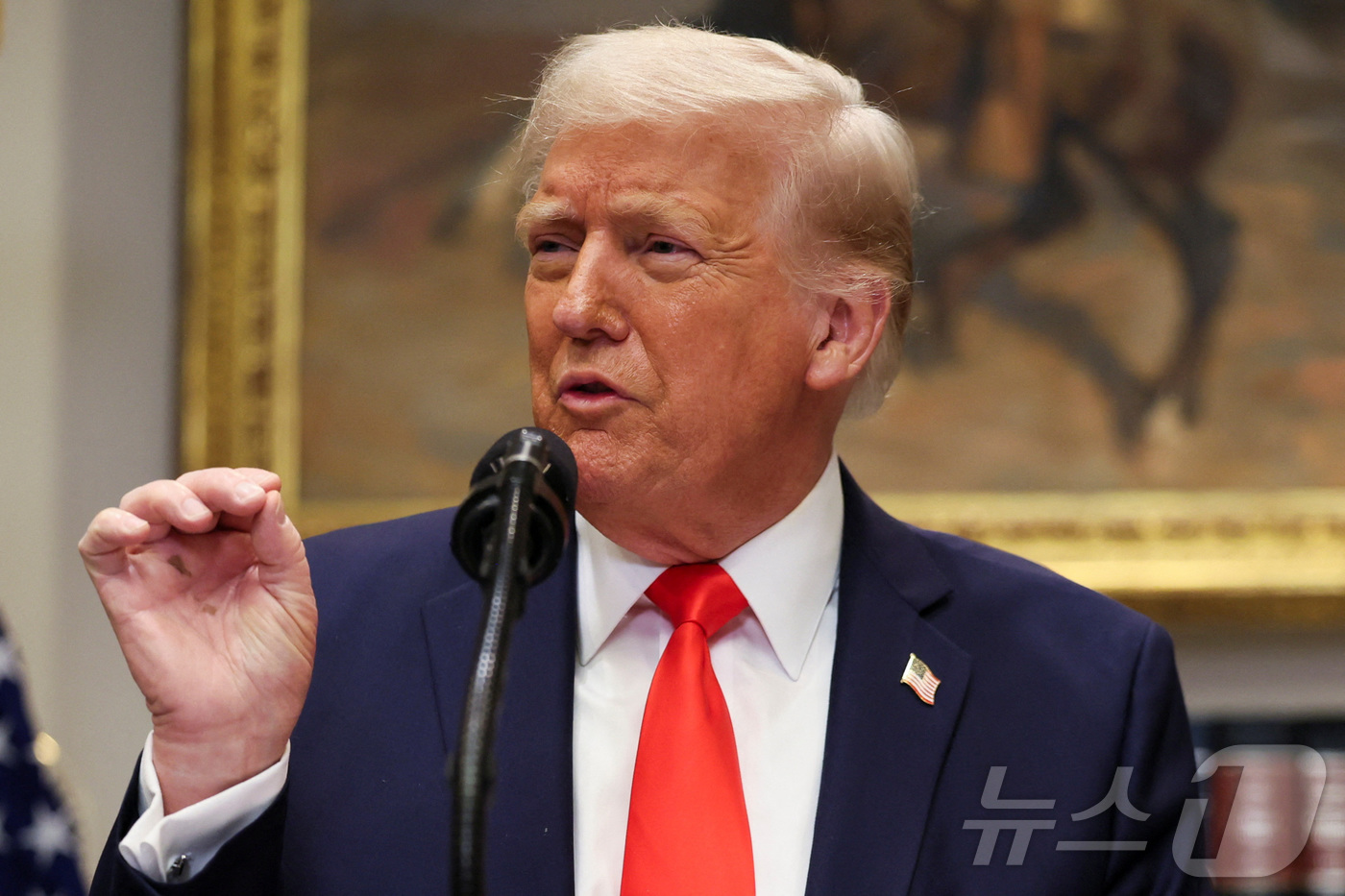도널드 트럼프 미국 대통령이 3일(현지시간) 워싱턴 백악관에서 대만 TSMC의 반도체 생산설비 투자 계획을 발표하는 자리서 “캐나다와 멕시코에 대한 25% 관세가 4일부터 시행된다”고 밝히고 있다. 2025.03.04 ⓒ 로이터=뉴스1 ⓒ News1 우동명 기자 |