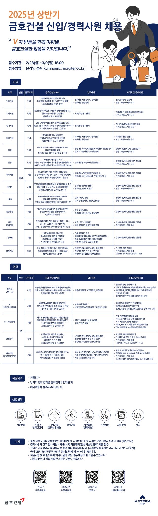 금호건설 2025년 신입사원, 경력사원 채용 포스터. /금호건설 제공 |