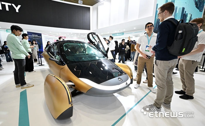 국내 최대 배터리 전시회 인터배터리2025가 산업통상자원부가 주최하고 한국배터리산업협회, 코엑스 주관으로 5일 서울 강남구 코엑스에서 열렸다. 참관객이 LG에너지솔루션이 배터리가 장착된 미국 압테라 모터스의태양광 전기차 압테라를 살펴보고 있다.