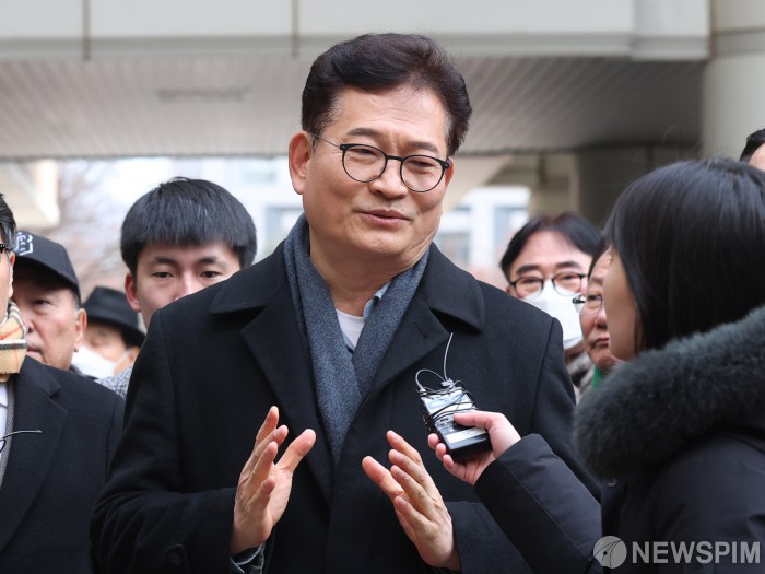 이날 공판에서는 송 전 대표에 대한 증인 신문이 진행됐다. 2021년 더불어민주당 돈봉투 사건의 정점으로 지목돼 기소된 송 전 대표는 지난 1월 8일 1심 선고공판에서 돈봉투 살포 혐의에 대해서는 무죄를 선고받았다.