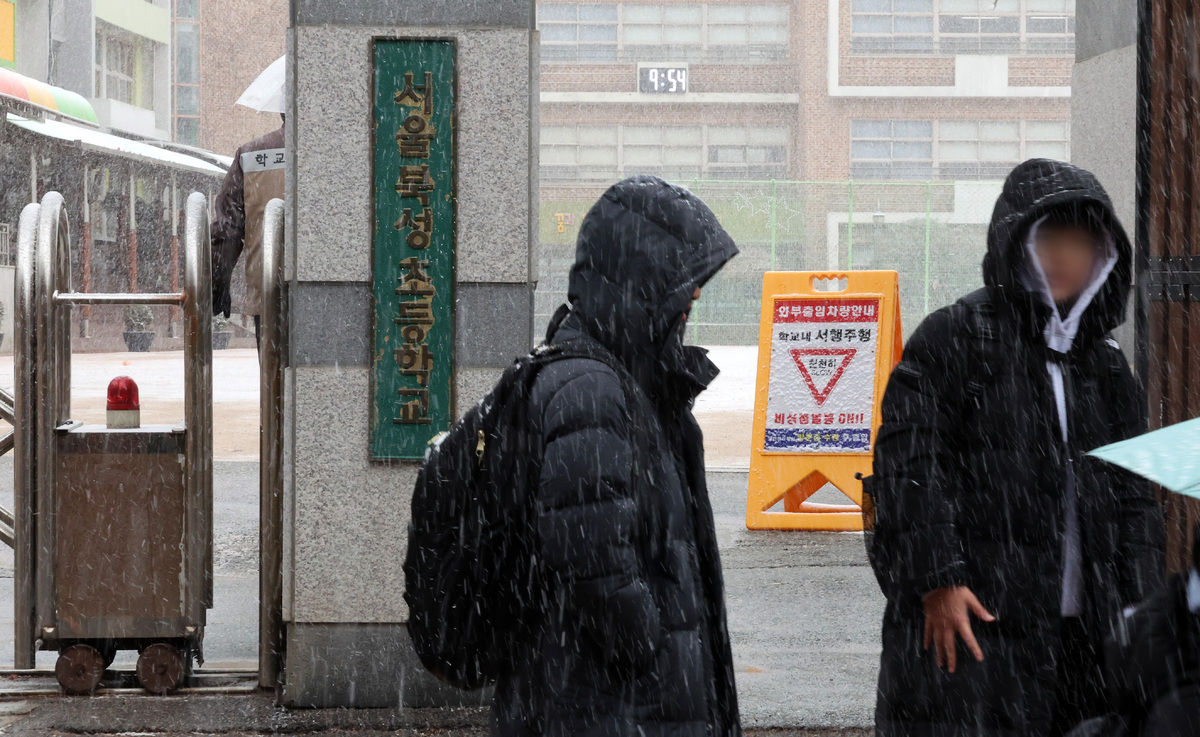 4일 서울 서대문구 북성초등학교 교문 앞에서 아이와 학부모들이 학교를 바라보고 있다. 뉴스1 |