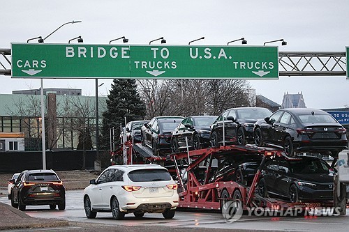 (워싱턴=연합뉴스) 강병철 특파원 = 도널드 트럼프 미국 대통령이 캐나다와 멕시코에 대해 25% 관세를 부과한 가운데 이들 국가에서 생산되는 자동차에 대해서는 관세를 한 달 유예하는 방안을 검토하고 있다고 블룸버그통신이 5일(현지시간) 보도했다.