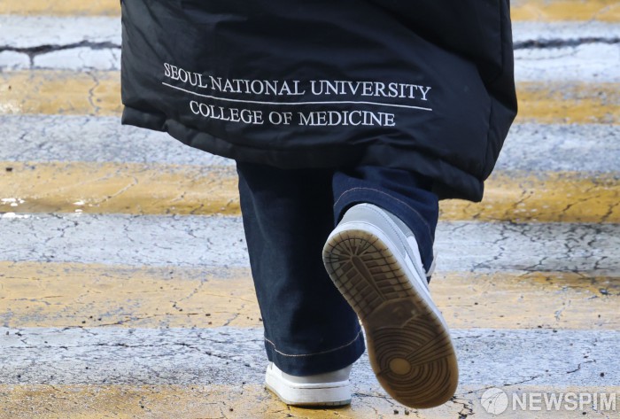 [서울=뉴스핌] 양윤모 기자 = 2025학년도 1학기 개강일인 4일 전국 40개 의과대학 중 10곳이 2025학년도 1학기 수강신청에서 전 학년 수강신청자가 없는 것으로 나타난 것으로 알려진 가운데, 서울의 한 의과대학 학생이 이동하고 있다. 2025.03.04 yym58@newspim.com |