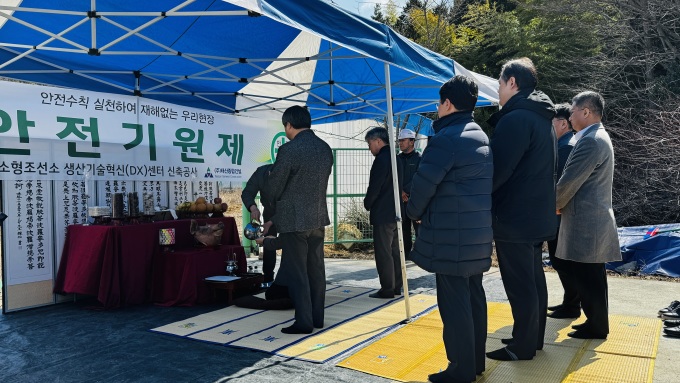 6일 경남 거제시 장목면 장목리 일원에서 중소형조선소 생산기술혁신(DX)센터 착공에 따른 안전기원제 [사진=거제시] 2025.03.06 |