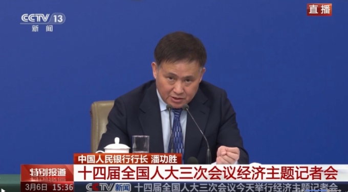 판궁성 중국 인민은행장은 6일 양회(전인대-정협) 프레스센터에서 진행된 경제분야 장관급 기자회견에서 "국내외 경제금융 상황 등을 감안해 적당한 기회를 택해 금리를 인하할 것"이라며 "현재 6.6%인 시중은행 지준율을 감안할 때 지준율도 하향의 여지가 있다"고 말했다.