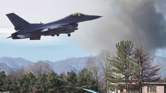 우리 공군은 F-15K, KF-16, FA-50 전투기를 출격시켜 각종 폭탄을 투하하는 훈련을 했습니다.