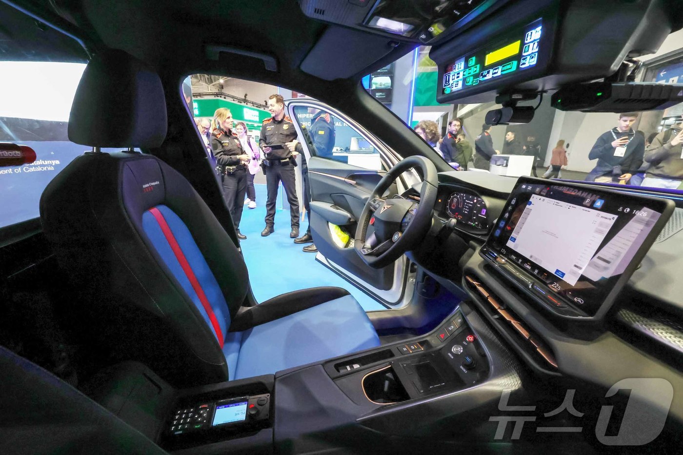 (바르셀로나(스페인)=뉴스1) 민경석 기자 = 6일(현지시간) 스페인 바르셀로나 피라 그란 비아 전시장에서 열린 '모바일 월드 콩그레스(MWC) 2025'에 마련된 카탈루냐 경찰 부스에서 '스마트 경찰차'가 공개되고 있다 MWC는 전세계 800여 개의 이동통신사가 참여하는 세계이동통신사업자연합회(GSMA)가 주관하는 행사로, 미국과 독일에서 각각 열리는 CES, IFA와 함께 3대 전자·IT 전시회로 꼽힌다. 올해 MWC에 참가하는 한국 기업은 187곳으로 지난해보다 22곳이 늘었다. 2025.3.6/뉴스1