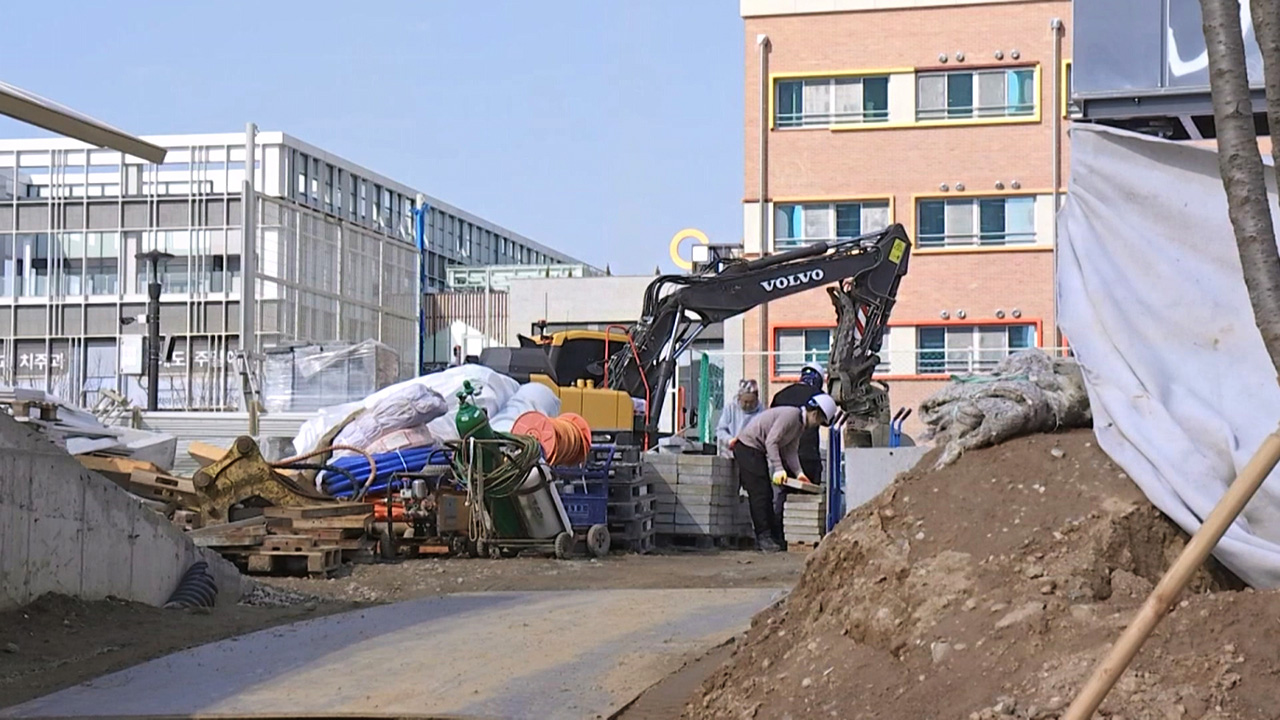 교실에선 수업이, 운동장에선 공사가 한창인 학교를 박상욱 기자가 다녀왔습니다.