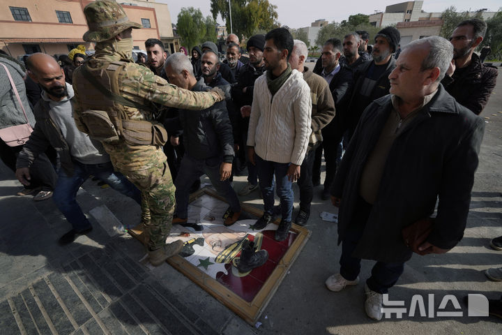 [다마스쿠스=AP/뉴시스] 시리아에서 옛 독재자 바샤르 알아사드 전 대통령을 따르는 무장 세력과 시리아 과도정부 병력 간 충돌로 16명이 사망했다고 6일(현지 시간) AFP통신이 보도했다. 사진은 지난해 12월 23일 시리아 다마스쿠스에서 시민들이 아사드의 초상화를 짓밟는 모습. 2025.03.07. |