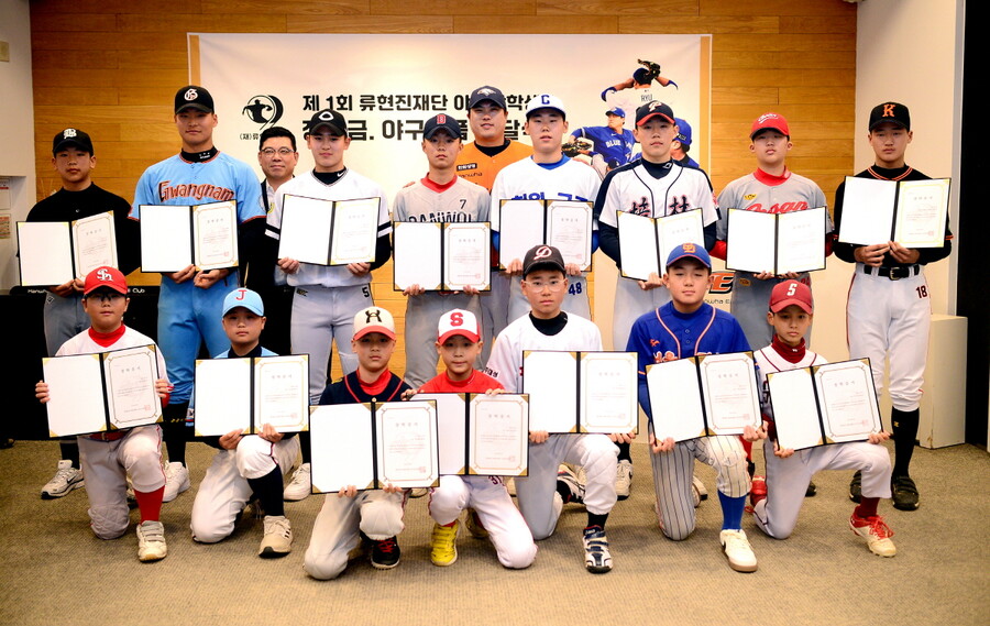 류현진재단은 7일 대전 한화생명이글스파크 홍보관에서 ‘제1회 류현진재단 야구장학생 장학금 전달식’을 가졌다.