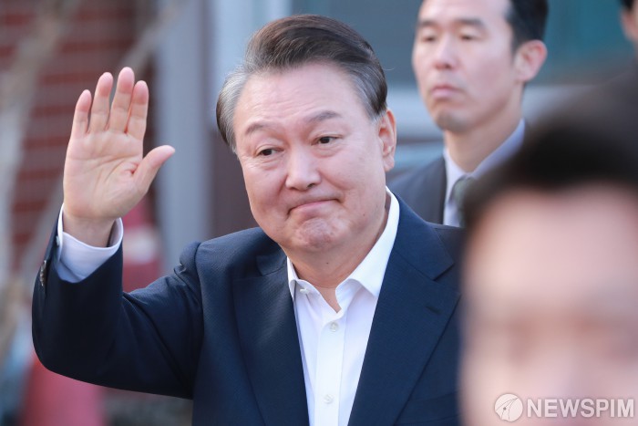 [의왕=뉴스핌] 이형석 기자 = 석방된 윤석열 대통령이 8일 오후 경기 의왕시 서울구치소를 나서며 지지자들을 향해 인사를 하고 있다. 2025.03.08 leehs@newspim.com