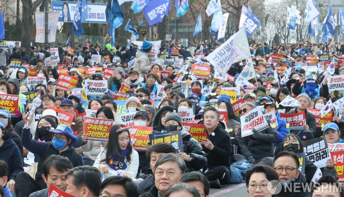 [서울=뉴스핌] 양윤모 기자 = 법원이 윤석열 대통령 구속 취소 청구를 인용한 뒤 주말인 8일 오후 안국동 사거리에서 야5당(더불어민주당·조국혁신당·진보당·기본소득당·사회민주당)이 '내란종식과 민주헌정 수호를 위한 윤석열 파면 촉구 범국민대회'를 개최했다. 이 자리에는 이재명 더불어민주당 대표를 비롯해 혁신당 김선민 대표 권한대행 등이 참석한 가운데 검찰은 윤 대통령 구속취소 결정에 즉시 항고해야 한다고 주장했다. 2025.03.08 yym58@newspim.com