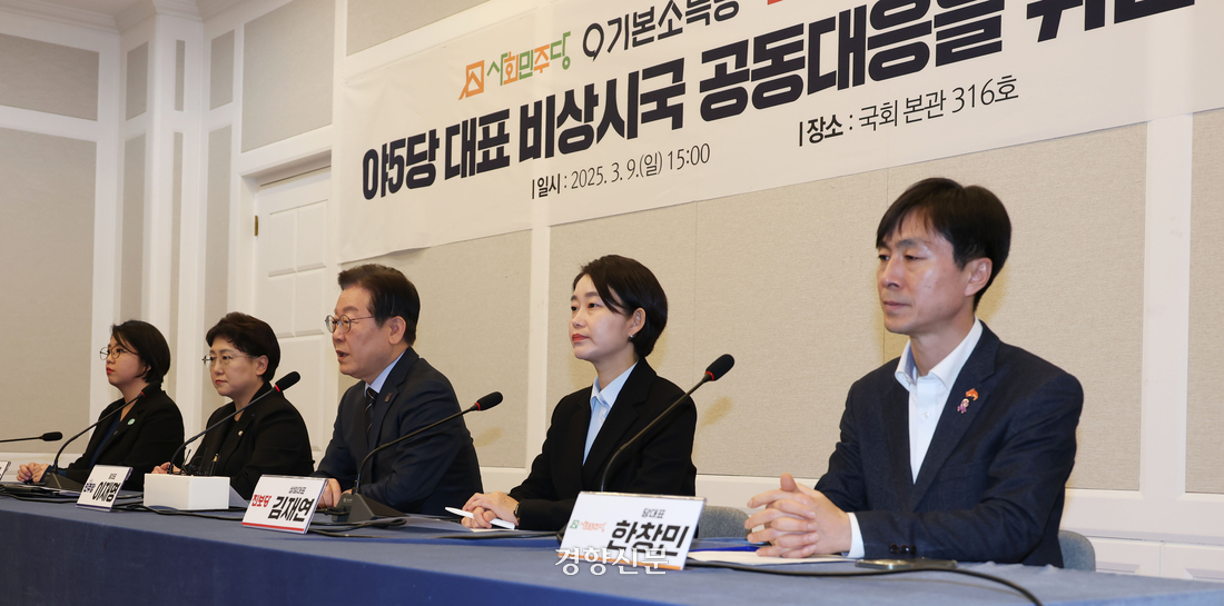 이재명 민주당 대표 등 야 5당 대표는 9일 오후 ‘비상시국 공동대응을 위한 원탁회의’를 열고 이같이 결정했다.