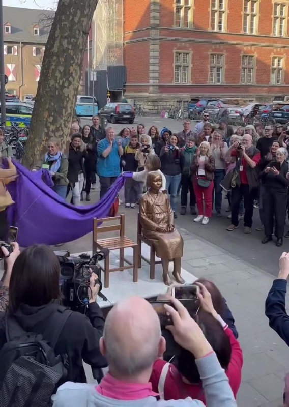 재독 시민단체 코리아협의회 등에 따르면 이날 독일 쾰른의 나치기록박물관 앞에선 ‘평화의 소녀상’이 설치됐다. 소녀상 설치 및 전시는 제2차 세계대전 기간 중 아시아 여성들에게 자행된 전쟁범죄를 주제로 열리는 ‘망각에 반대하는 예술’ 전시회의 일부다. 소녀상은 6월 1일까지 나치기록박물관 앞에서 전시될 예정이다.